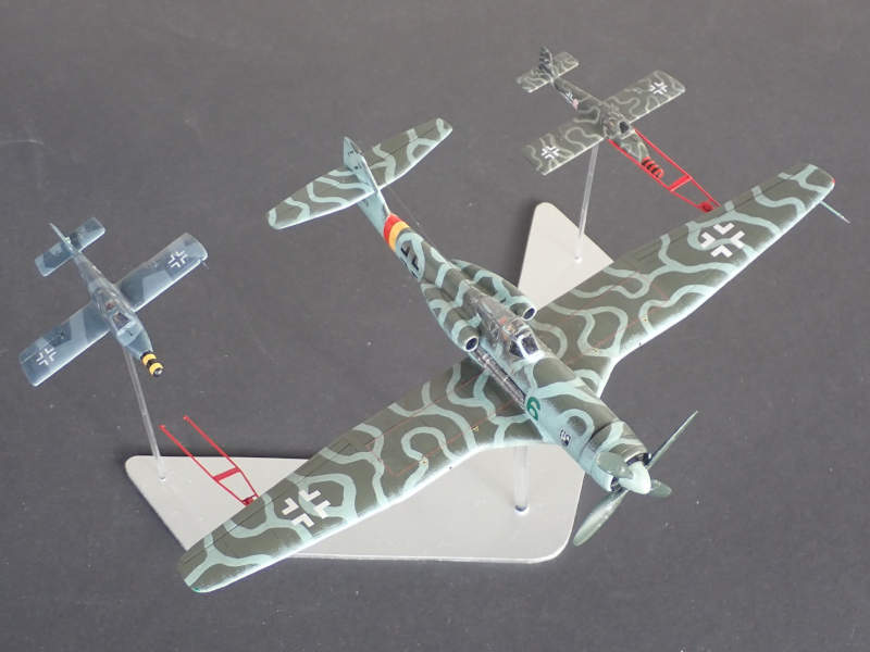 Eine Bf 109 zum Kampfsegler umgerüstet und mit einer angepassten EMW A5 auf 12000 m geschossen: So stellte man sich auf dem Weg zur Bachem Natter einen Objektschutzjäger vor, der nie verwirklicht wurde. Die ´109 entstand aus dem Bausatz von Heller (B-1 / C-1) in 1:72. Die Teile zum Umbau entstanden mit dem 3D-Drucker. HIER bei den Schwobabaschdlern. HIER auf MV.